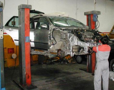 Com o passar dos anos e com o aumento do trabalho, os responsaveis por esta oficina de automóveis só se preocupam com a qualidade dos seus serviços.